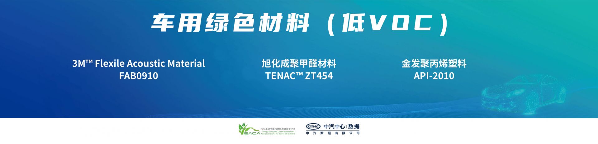依据《车用绿色材料评价规程(2018年版)》,中汽数据遴选出三款“车用绿色材料(低VOC)”典型案例,分别为3M™FlexileAcousticMaterialFAB0910、旭化成聚甲醛共聚物TENAC™ZT454和金发聚丙烯塑料API-2010,这三款材料代表了车内材料在VOC性能方面的优秀水平,来自上述企业的专家分享了材料的VOC先进控制技术。