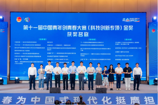 第十一届中国青年创青春大赛(科技创新专项)为获奖团队颁发金奖