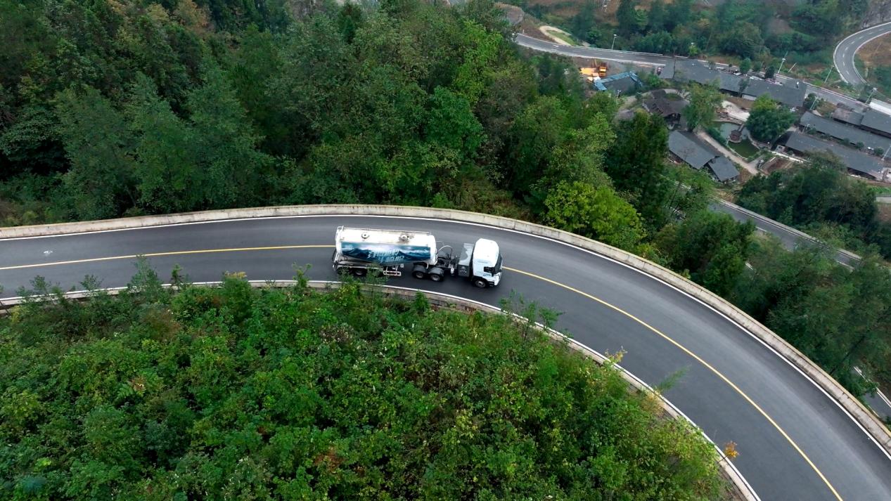 对于在山区运营的重卡用户而言,长距爬坡、连续弯道、极陡下坡等工况下,往往有着电耗骤增、动力不足、操控不便、驾驶安全性等用车痛点。宇通重卡针对性开展真实用车场景下的实况性能验证挑战,以真实表现打消客户顾虑。此次挑战,宇通400度电牵引车从石柱县出发,一路向连绵群山深处进发,途经壮阔秀丽的獐子崖绝壁天路、351国道弯弯绕绕山路108拐、海拔落差400米以上等多种复杂路况,以卓越硬实力展示产品在节能、动力、操控、安全等方面的优秀表现。