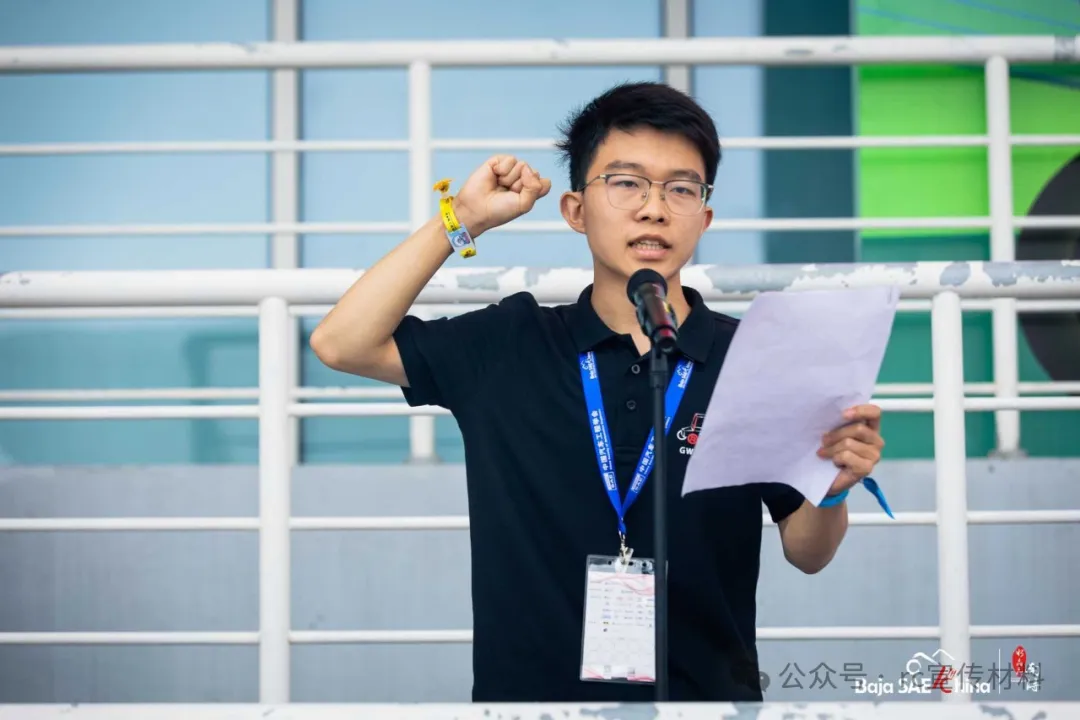 哈尔滨工业大学威海光威HRT车队的赵云天代表参赛选手宣誓