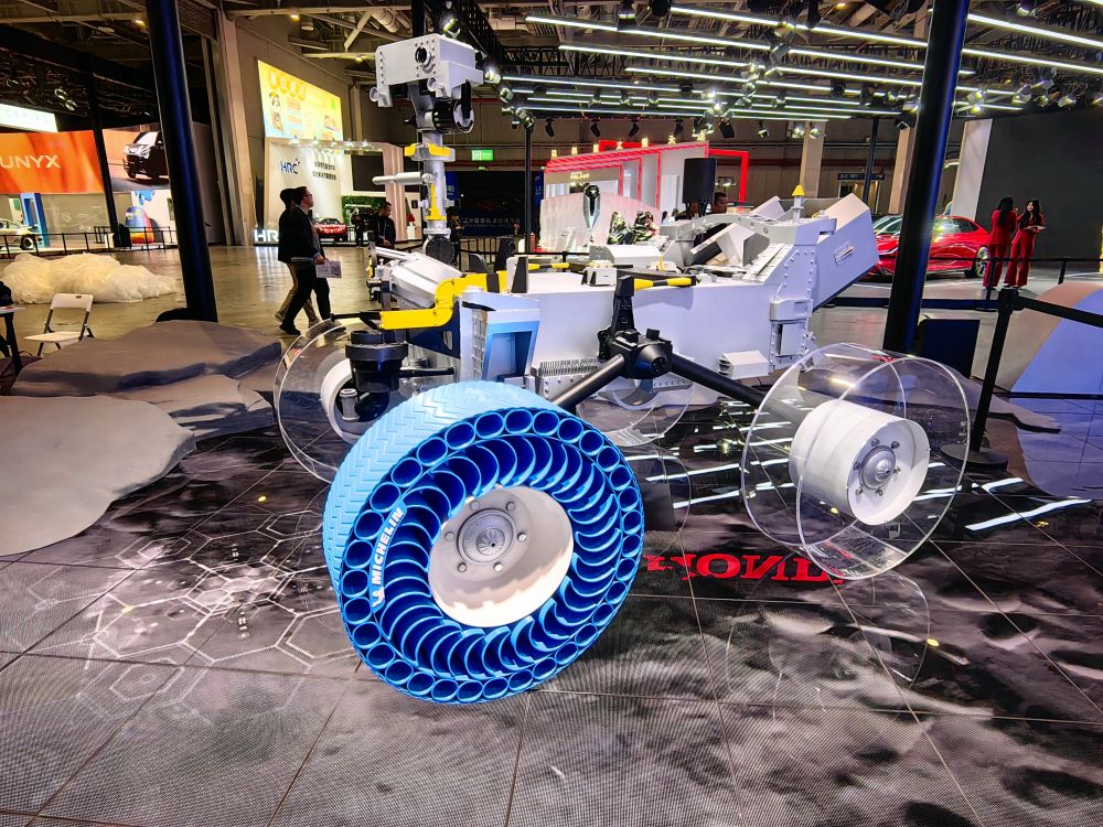 进博会期间,米其林将亚洲首发一款月球探测车专用的免充气轮胎。新华社记者周蕊摄