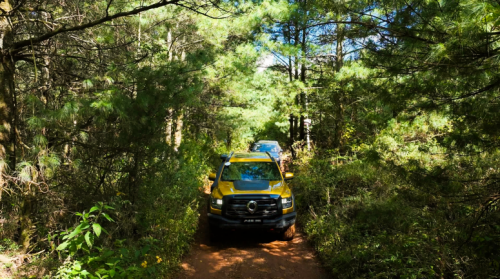 行驶在林间泥土路上,路面变得坑洼不平,尤其前期的降雨让本已难行的车辙路愈发泥泞,低附着力的路面让车辆很容易出现打滑。2.4T长城炮家族车型均搭载强大四驱系统,可以轻松胜任全天候、全路况、全场景艰险征途。