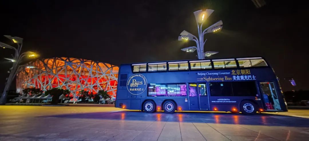 北京朝阳美食观光巴士集美景、美食、美车于一体,线路途经北京CBD、朝外、工体、三里屯、亮马河文化经济带、奥林匹克中心区等区域,贯穿鸟巢、水立方、奥运塔等多个朝阳标志性夜游景点和网红商圈,全长约40公里,游玩时长约2小时。
