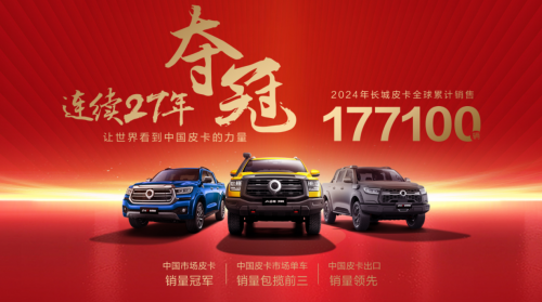 长城炮诞生仅5年多,全球累计销量已突破65万辆,累计51个月销量过万,蝉联中国皮卡销量冠军;更是助力长城皮卡2024年全球销量达177100辆,连续27年销量第一,全球累计销量近270万辆。长城皮卡以年度销量第一、市占率近50%、霸榜单车型销量前三、出口销量领先的全面领先优势,引领中国皮卡行业向上跃升。