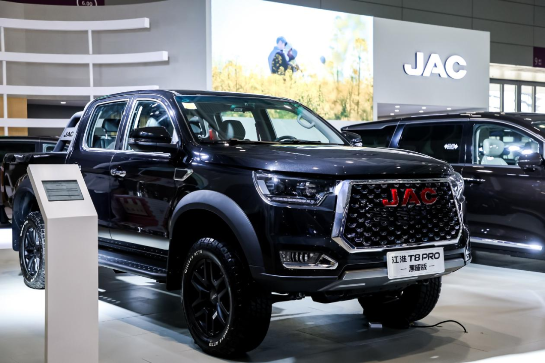 此次参展的江淮T8PRO黑曜版,外观上通过简约但不简单的全黑涂装设计打破了工具车的刻板印象,与外观相呼应,内饰设计同样以黑色调为主,显得稳重而优雅。动力上搭载安康2.0CTI黄金动力,额定功率125kW,最大扭矩420N·m,匹配采埃孚8AT变速箱,加上博格华纳电控分时四驱系统以及4种驾驶模式的赋能,拥有比SUV更强大的通过能力和装载能力,能以强大的实力从容征服各种路况。