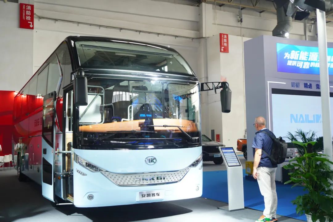 其中,N71E作为安凯N系列车型的核心产品,采用全新分布式电驱动系统,搭载高能量密度电池和高效率永磁同步电机,不仅续航长,还成功实现了低能耗与强动力的完美平衡。该车外观沉稳大气,内饰温馨舒适,其“22+1”的宽适座舱、静音新风系统及轿车化乘坐体验,既能满足高端商务接待的私密需求,又为精品小团游提供“移动会客厅”般的舒适享受,堪称定制化出行的“全能选手”。