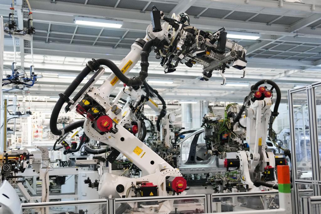 ■6月16日,机器人在北京小米汽车工厂车间流水线上工作。(新华社记者郑焕松摄)
