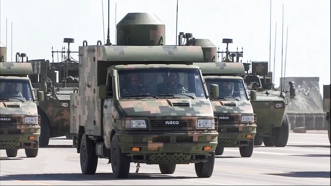 依维柯驶过阅兵场的红毯,用轮印画出强军强国的年轮。