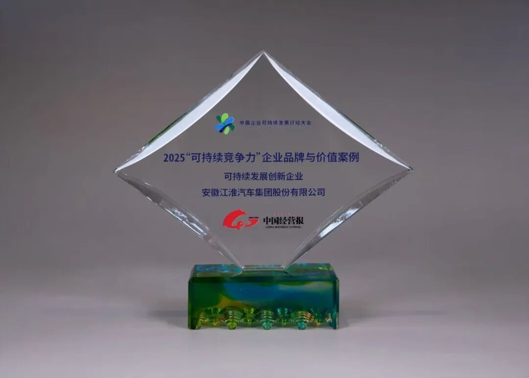 2025年9月23-24日,由《中国经营报》主办的“绿色引领重塑未来—2025中国企业可持续发展行动大会”圆满落幕。活动期间,安徽江淮汽车集团股份有限公司(以下简称“江汽集团”)凭借高端智能新能源转型发展成果入选“2025‘可持续竞争力’企业品牌与价值案例”精选可持续发展创新企业案例。