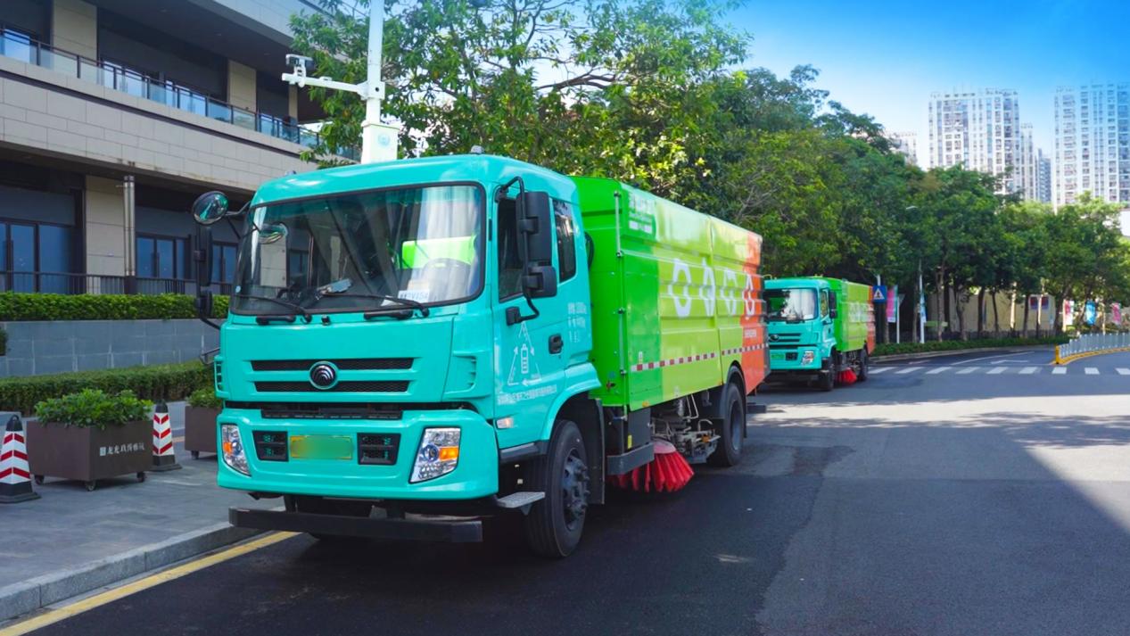 在深圳坪山体育中心等核心赛区,新能源环卫车队已经投入高效作业状态。这里集结的多款专业的新能源作业车辆,覆盖了洗扫、清洗、养护等全场景作业需求。