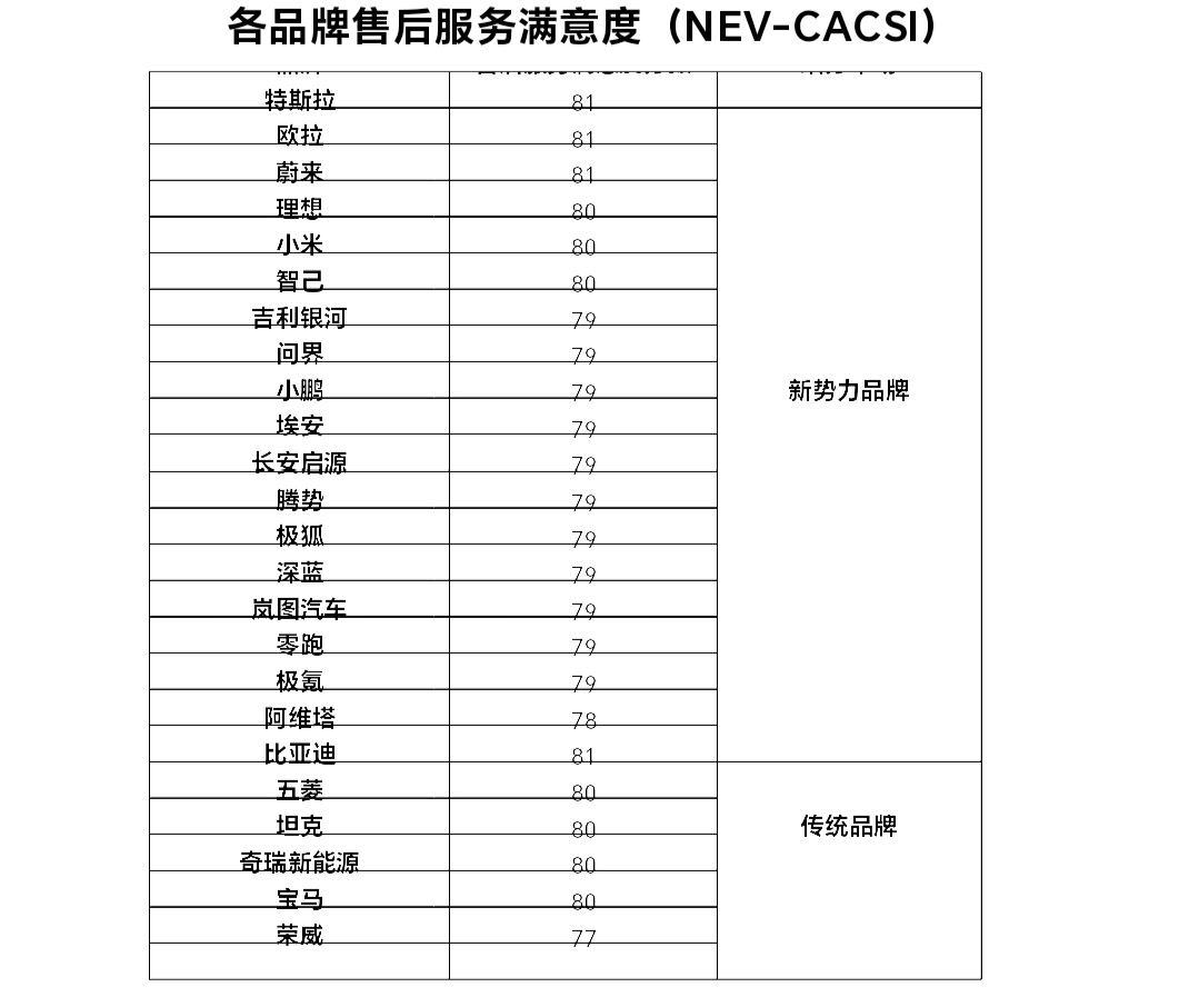 2025年,新能源汽车销售服务满意度得分为81分,与上年持平;售后服务满意度得分为79分,同比下降1分,各环节用户体验同比均有不同程度下降,保养和维修服务、服务设施及环境、服务效率是降幅最大的前三位因子。