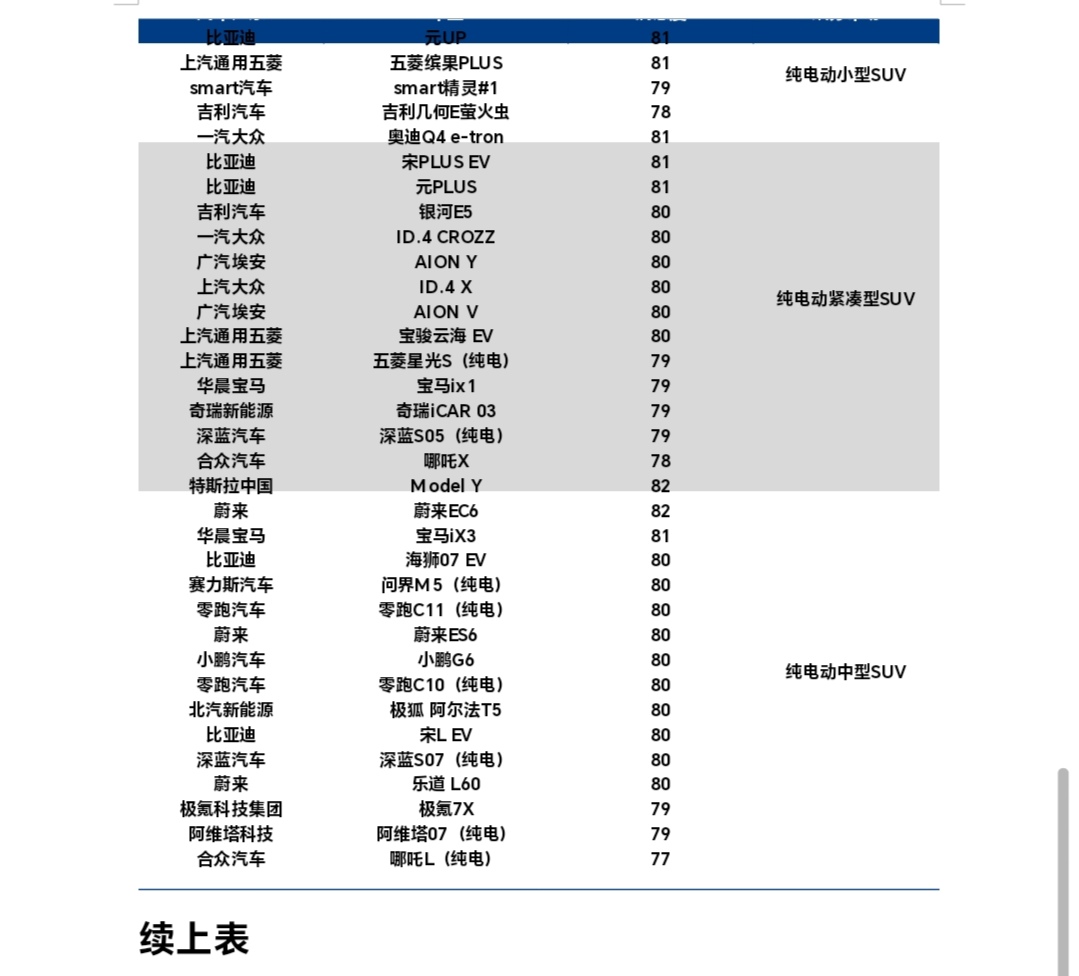纯电动紧凑型SUV:一汽大众奥迪Q4e-tron、比亚迪宋PLUSEV、比亚迪元PLUS