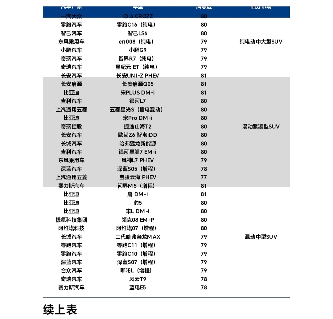 混动紧凑型SUV:长安汽车-长安UNI-ZPHEV、长安启源Q05、比亚迪宋PLUSDM-i