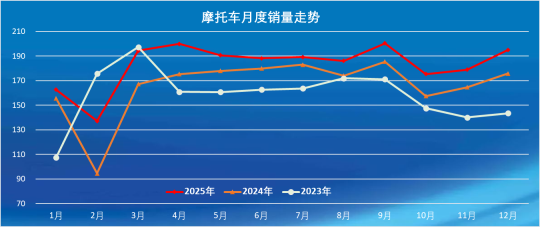 2025年12月,我国摩托车产销两端同比、环比均呈正增长态势,外贸出口增幅明显,创年度单月出口量新高。2025年摩托车行业收官向好,产销稳增、质效提升,结构优化态势显著。全年外贸出口保持较高景气度,国内市场复苏偏缓,但休闲娱乐型大排量摩托车市场维持高增长格局,电动摩托车则迎来恢复性增长。