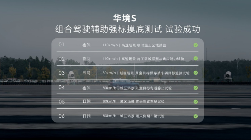 华境S超前完成L2强标的全部65项场地测试