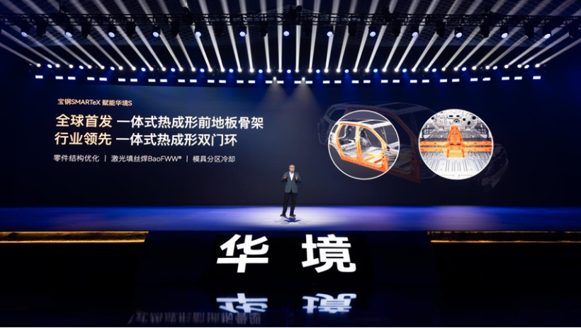 宝钢赋能华境S“硬支撑“。中国宝武宝钢股份汽车板首席工程师鲍平现场分享了与上汽通用五菱双方联合研发的成果。上汽通用五菱与宝钢联合研发的1500MPa一体化热成型前地板骨架为行业首发,侧门防撞梁首次规模化应用2000MPa超高强钢——堪比潜艇用钢。“2000MPa热成型钢的抗变形能力,相当于在指甲盖大小的面积上承受20吨的力而不失效。”鲍平说,华境S整车高强钢及铝合金占比超过85%,其中近30%为热成型超高强钢。