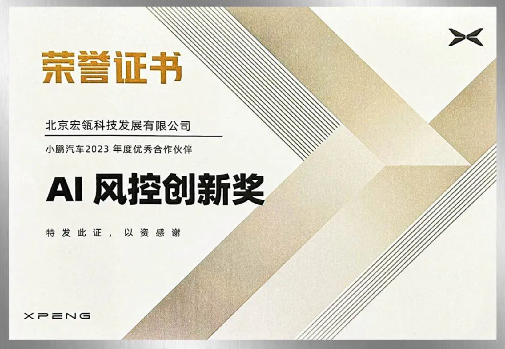 造车新势力小鹏汽车年度优秀AI风控创新合作伙伴!
