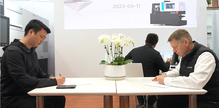 4月11日,瑞士托纳斯与台州王铖精密机械在CIMT2023展会举行签约仪式,达成20台托纳斯Swiss DT机床订购合同,并形成未来数年战略合作发展意向。