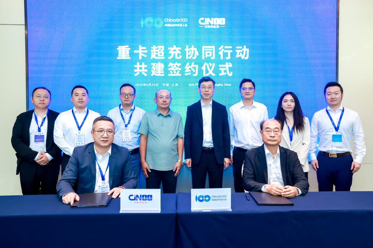 期间,中国电动汽车百人会与京能新能源举行“重卡超充协同行动”签约仪式