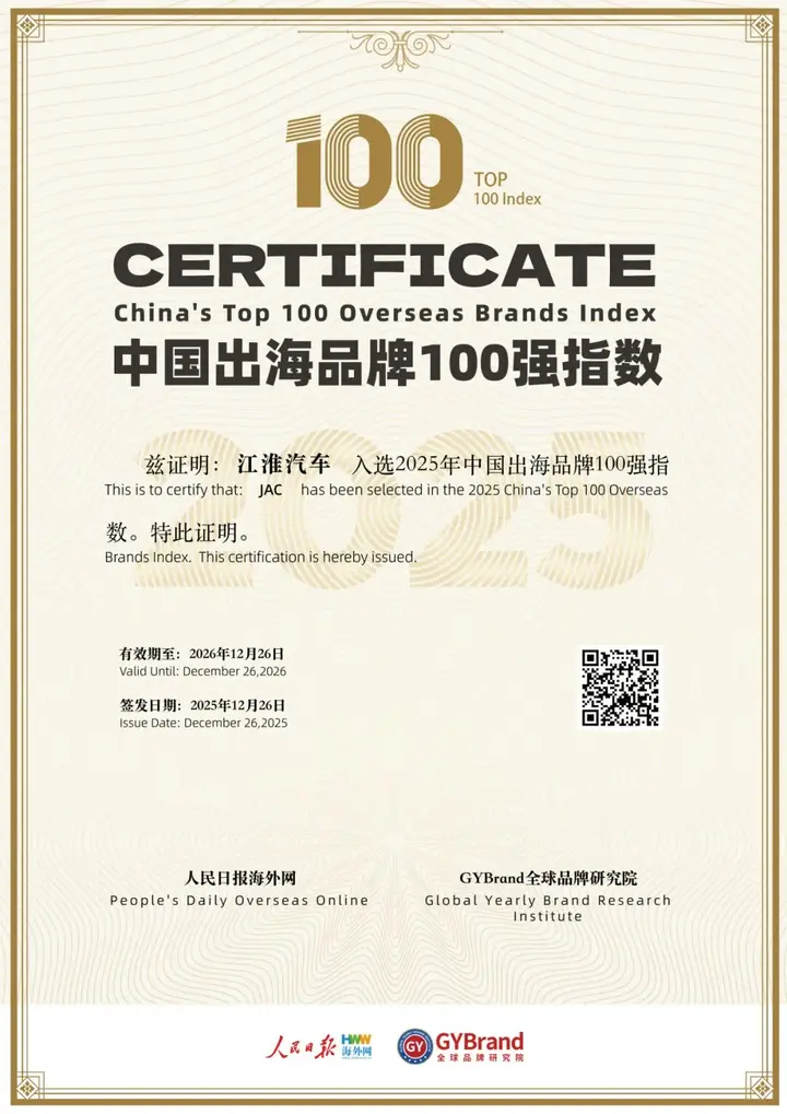 江淮汽车喜获双重殊荣!成功入选中国出海品牌100强指数,并获评ESG 海外传播优秀案例