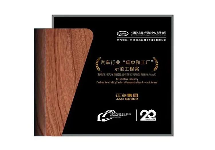 日前,江汽集团凭借其碳中和的实践与成效,荣获由中汽信息科技(天津)有限公司(中汽信科)颁发的“汽车行业‘碳中和工厂’示范工程奖”,标志着江汽集团成为安徽省汽车行业中首家获得权威认证的“碳中和工厂”。