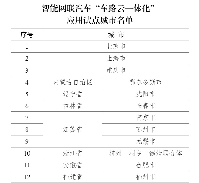 20个!智能网联汽车“车路云一体化”应用试点城市公布