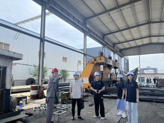 在与宜昌鑫汇船舶有限公司副总经理刘军座谈交流后,实践团了解宜昌船舶产业布局、发展现状、园区基础设施配套及绿色船舶产业情况,并了解到当前制约绿色船舶产业发展的因素,随后,实践团近距离参观船舶的加工过程,现场工作人员为实践团介绍了船舶制造工艺。