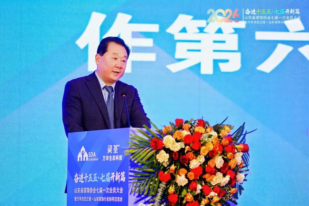 3月5日,山东省装饰协会七届一次会员大会暨万华生态之夜·山东装饰行业协同交流会隆重召开。本次大会以“奋进十五五·七届开新篇”为主题,汇聚全省装饰行业会员代表、业内专家学者及各界嘉宾五百余人,共商行业发展大计,共绘装饰行业高质量发展蓝图。