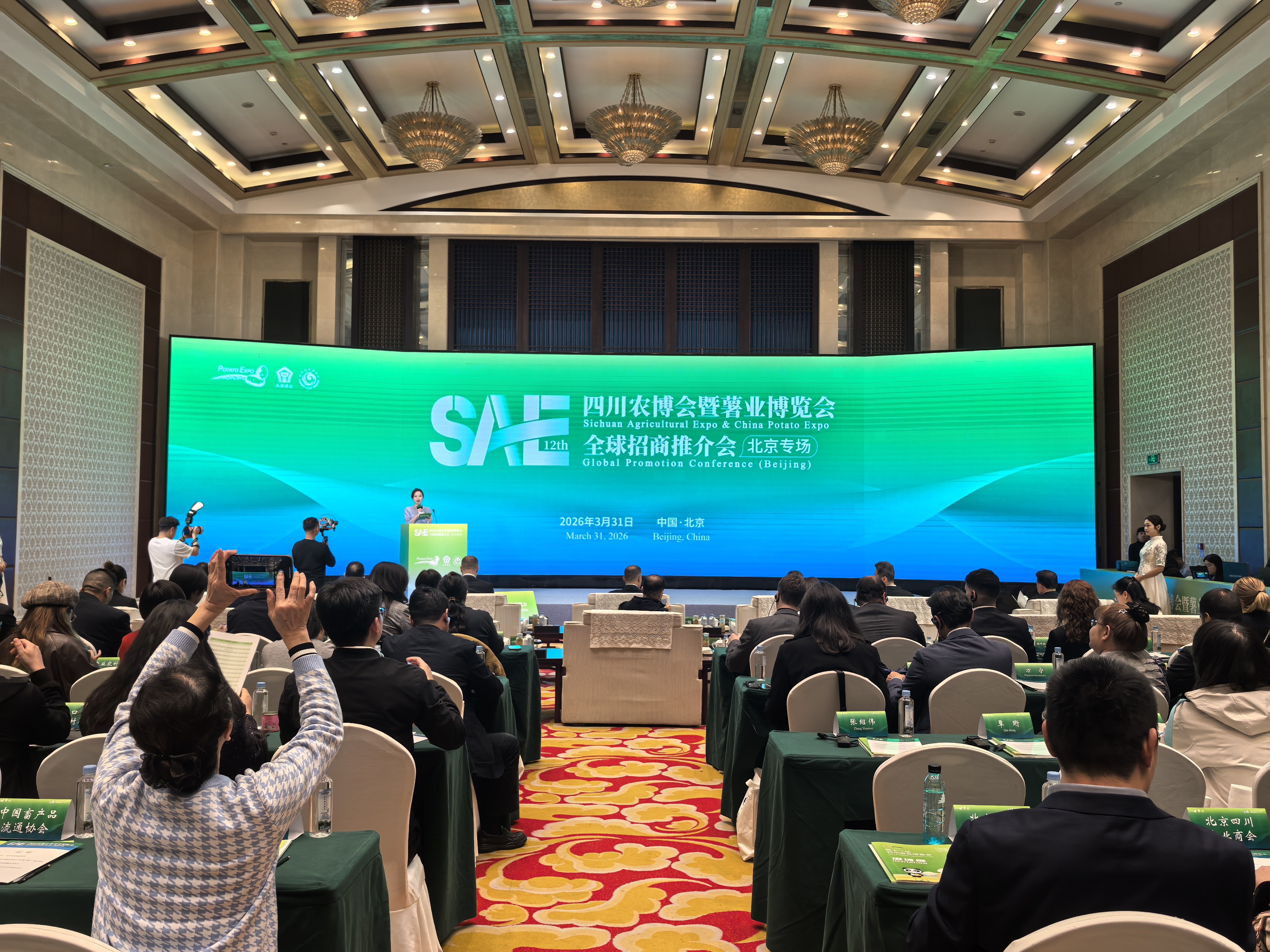 阳春三月,生机盎然。3月31日,由四川国际博览集团主办的第十二届四川农业博览会(简称“农博会”)暨第十六届中国国际薯业博览会(简称“薯博会”)全球招商推介会在北京隆重启幕。这不仅是一次“天府粮仓”精品主动叩开华北核心消费市场大门的成功展示,也是一个面向全球展示四川农博会的平台。活动邀请海光食品、佳乐酒业等22家展商代表和北京四川企业商会、北京农产品流通协会等68家采购商到场,并邀请摩尔多瓦共和国、纳米比亚共和国驻华大使及19个国家的31名外宾出席。通过招商推介和精准产销对接,让农博会、薯博会特色展品通过首都的广阔平台,走向全国、链接全球。