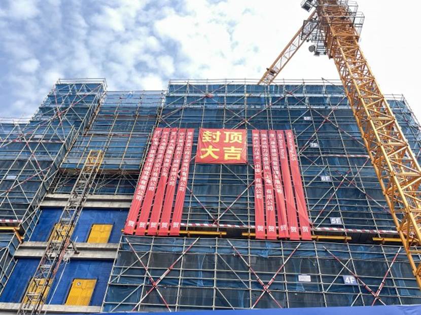 据了解,2#厂房总建筑面积为13676.43平方米,建筑高度为33.4米,共8层,楼体整体采用浇钢筋混凝土框架结构。自签订合同后,中交四航局项目团队立即响应进场要求,迅速组织人员、机械投入地下室施工。面对工期紧、任务重、施工压力大等诸多挑战,项目部全体人员迎难而上,始终坚持高标准、严要求,科学统筹、精心组织、合理调配资源,严格把控施工质量与安全。经过全体参建人员的不懈奋战,项目顺利实现主体结构封顶,为后续施工推进奠定了坚实基础。