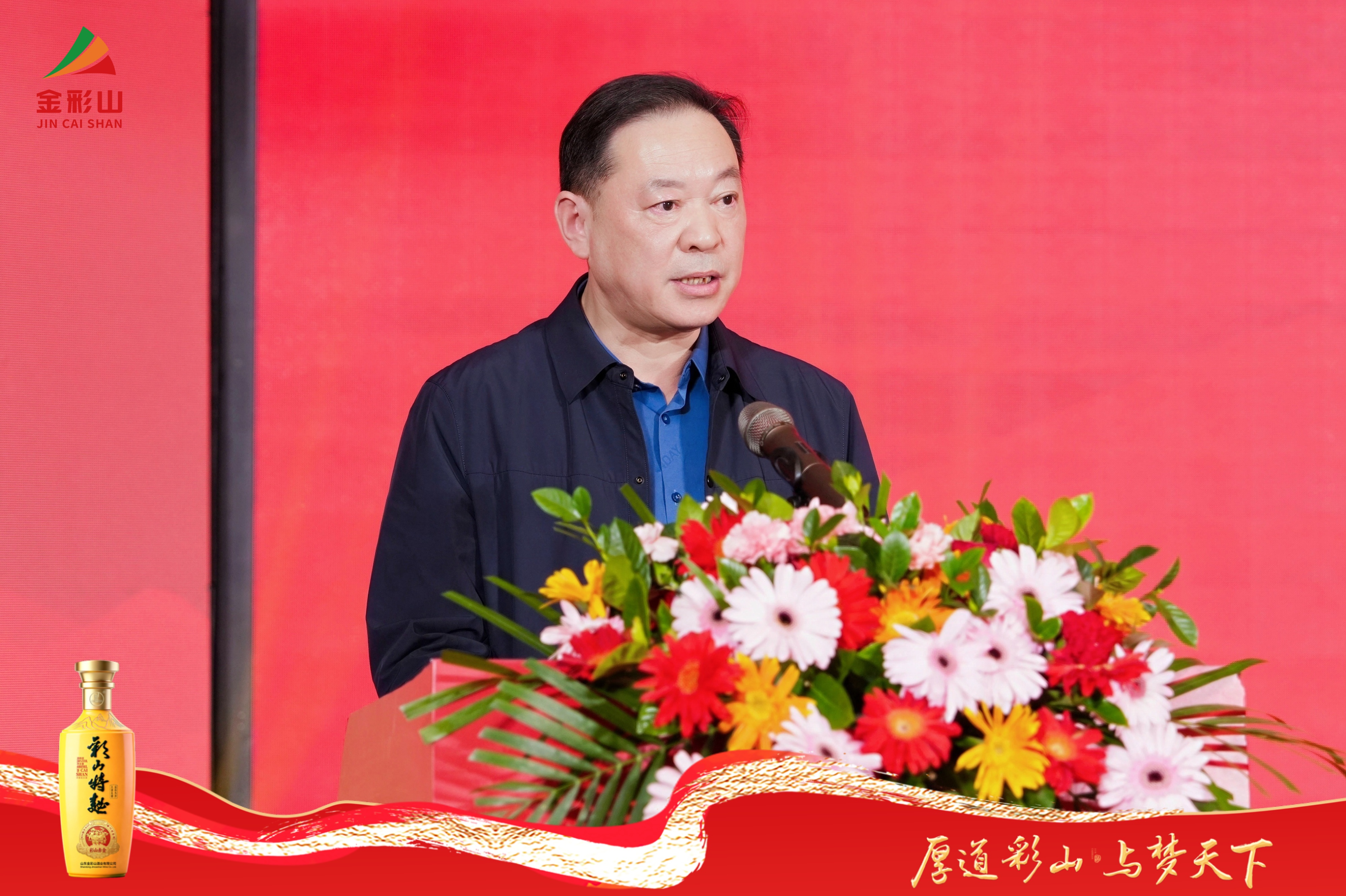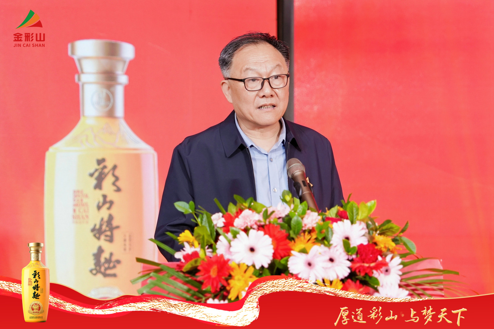 发布会上,孟现波董事长发表致辞,深情回顾了金彩山深耕白酒行业几十载的匠心之路,始终坚守“厚道酿酒、诚信经营”的品牌初心,传承非遗酿造技艺,深耕品质、精益求精。随后,薛剑锐会长上台寄语,高度肯定了金彩山在白酒行业的匠心坚守与行业贡献,称赞其始终以品质为根基、以诚信为纽带,期待彩山赤金新品能够凭借卓越品质,引领区域中端白酒市场新潮流,为行业发展注入新活力。