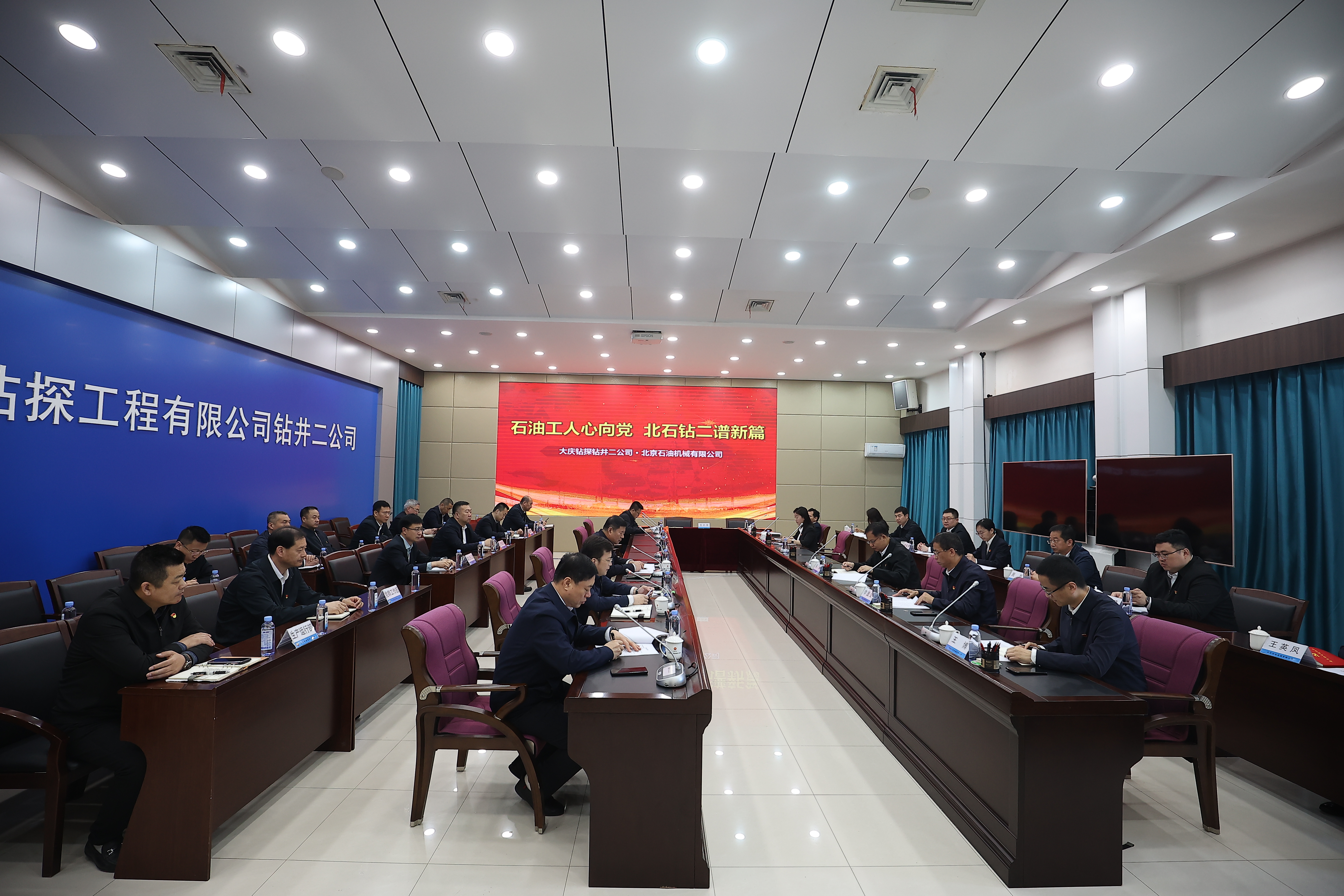 大庆钻探钻井二公司1205钻井队队长、党支部书记段永坚与北石公司市场销售仓储党支部书记、销售中心副经理蒋丹和技术中心经理、技术中心党支部副书记张立刚签订党支部《党建共建协议书》