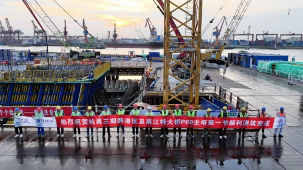 杭甬高速宁波三期项目甬江特大桥P60主塔首节顺利浇筑完成