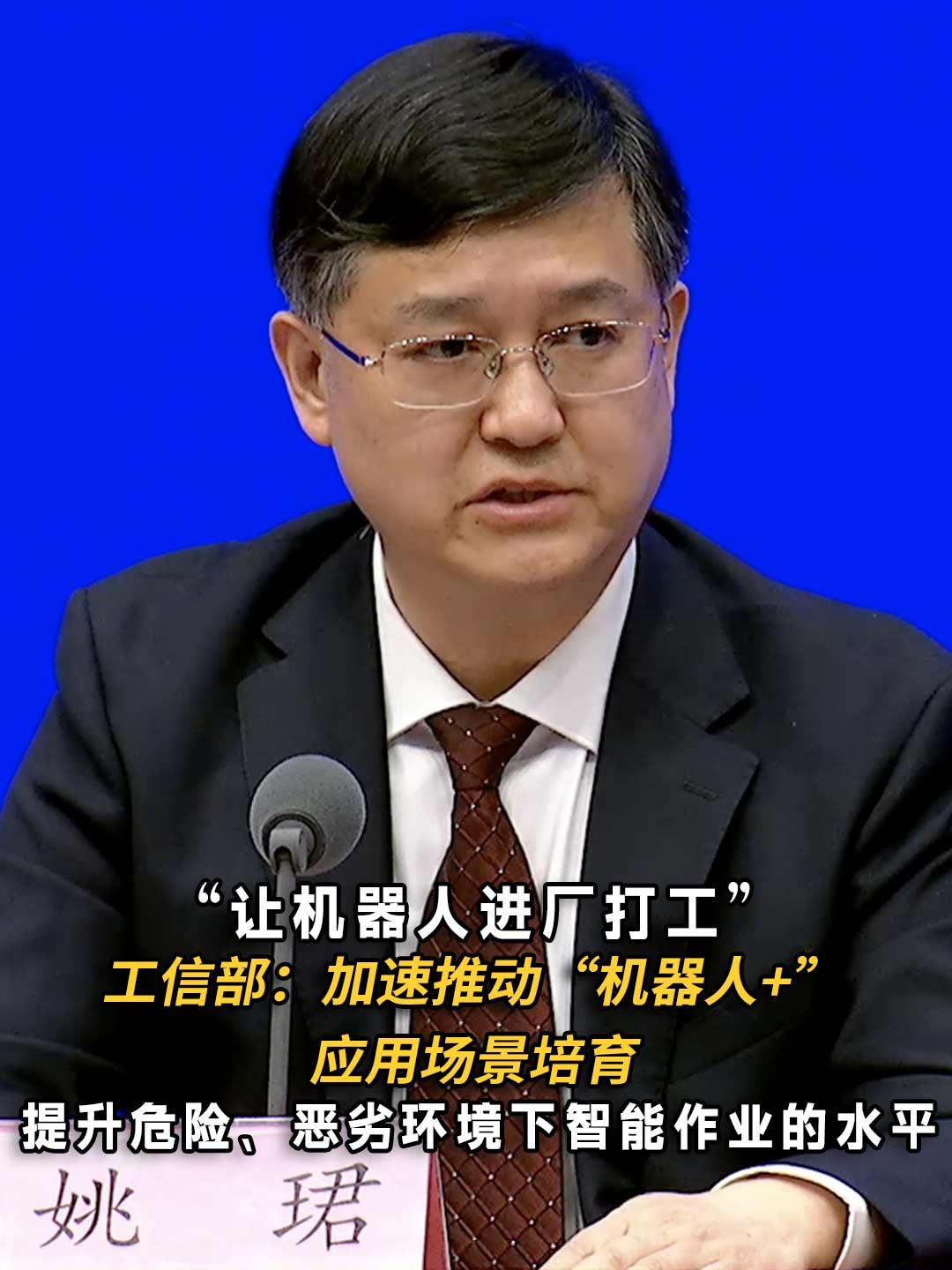 “让机器人进厂打工” 工信部:加速推动“机器人+”应用场景培育,提升危险、恶劣环境下智能作业的水平#工业机器人#人形机器人#国务院政策例行吹风会