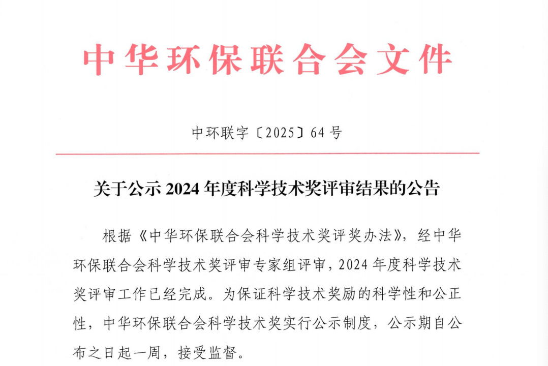 喜报!普瑞泰格科技成果获中华环保联合会“2024年度科技进步奖一等奖”