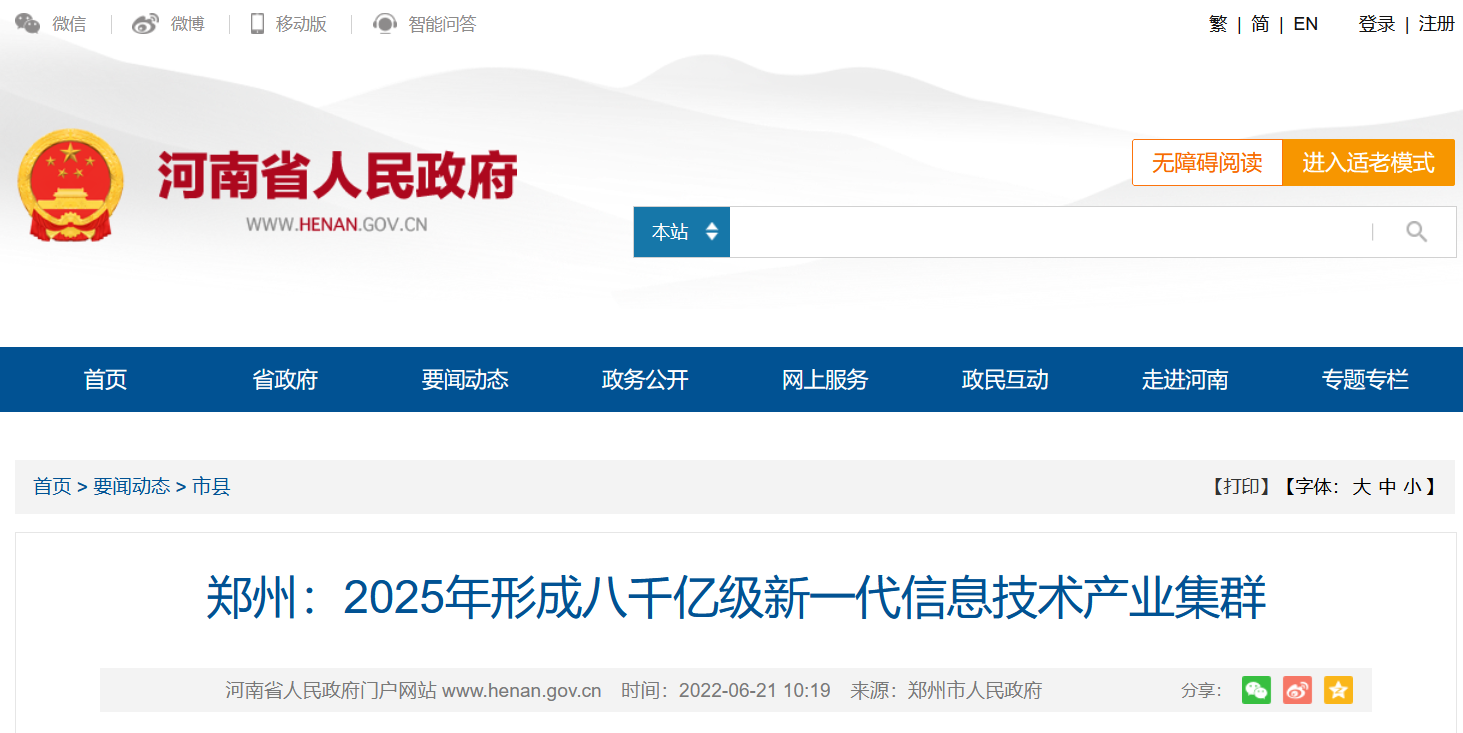 郑州:2025年形成八千亿级新一代信息技术产业集群
