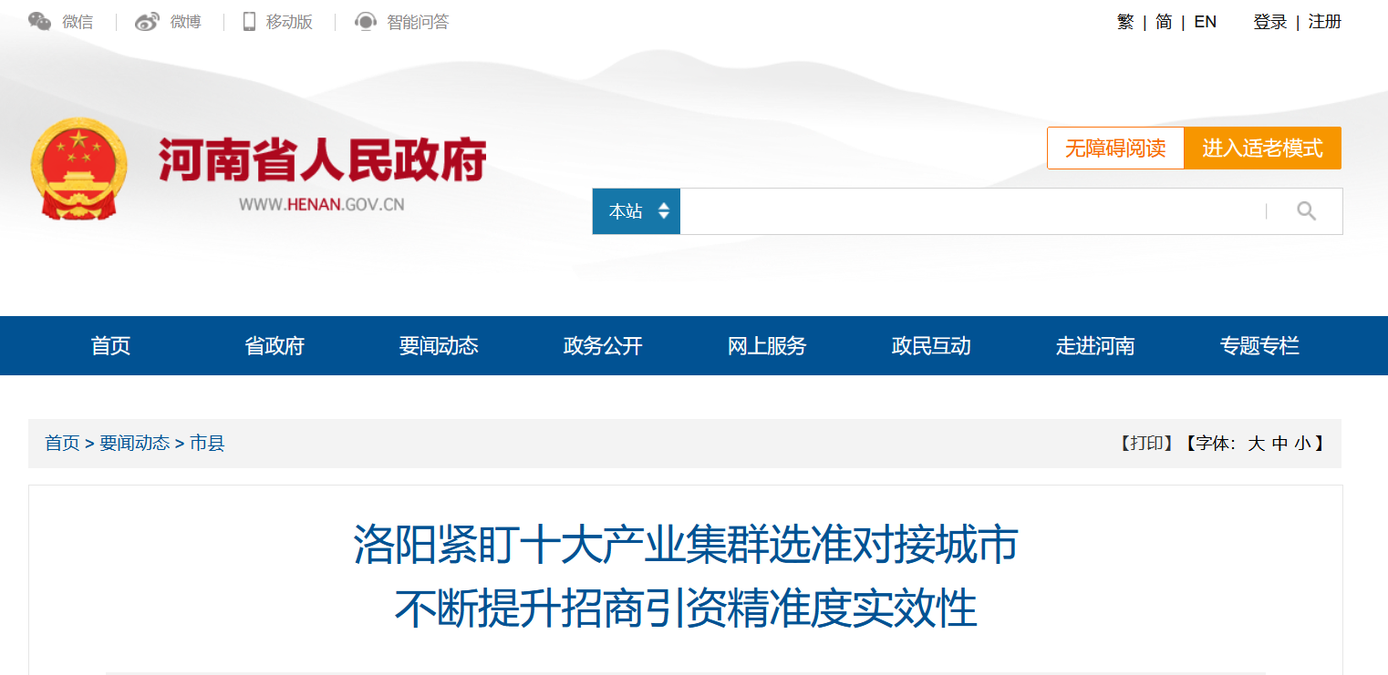洛阳紧盯十大产业集群选准对接城市 不断提升招商引资精准度实效性