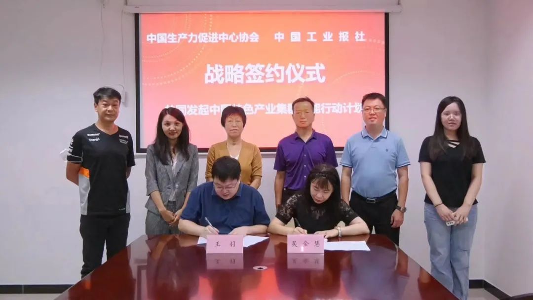 为贯彻和推动国家创新驱动发展战略实施,服务地方特色产业集群打造,7月20日,中国生产力促进中心协会与中国工业报社举行战略签约仪式,共同发起中国特色产业集群赋能行动计划。中国生产力促进中心协会监事长韩丽娟,中国工业报社党委书记、社长徐金宝等出席签约仪式,中国生产力促进中心协会常务副秘书长王羽、中国工业报社副社长吴金慧代表双方签约。