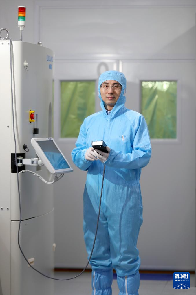 孙东明在位于沈阳市的中国科学院金属研究所纳米碳基电子器件超净实验室工作(2月24日摄)。