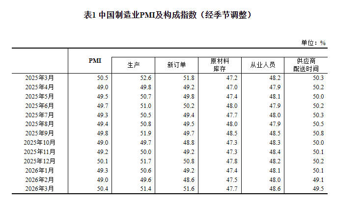 生产指数为51.4%,比上月上升1.8个百分点,表明制造业生产活动加快。