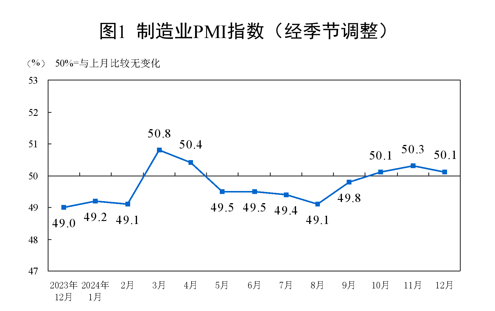 12月制造业采购经理指数(PMI)为50.1% 比上月下降0.2个百分点