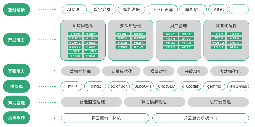 超云AIGC一体化解决方案作为技术支撑的核心,以其多层次、高效能的特点,为西云算力提供了强大的基础架构和算力支持,还通过先进的网络传输层和大模型层,实现了智能化服务的高效交付。这一方案的实施,不仅显著提升了企业的工作效能,更在用户体验上实现了质的飞跃。