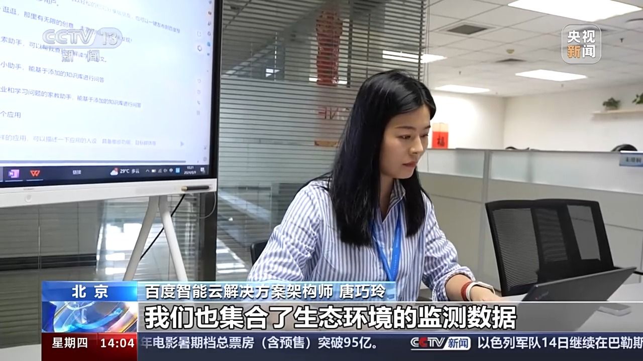 中国环境监测总站综合室胡天洋:我们大模型目前的训练主要是依托算力云的支持。原来靠人去分析报告需要两天时间,但是如果我们把智能体做好就可以实现分钟级甚至是秒级的报告自动生成,更好地助力生态保护修复。