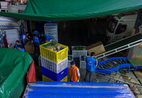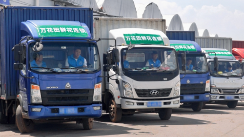 100+辆万花田专业自有冷链运输车辆每天往返基地