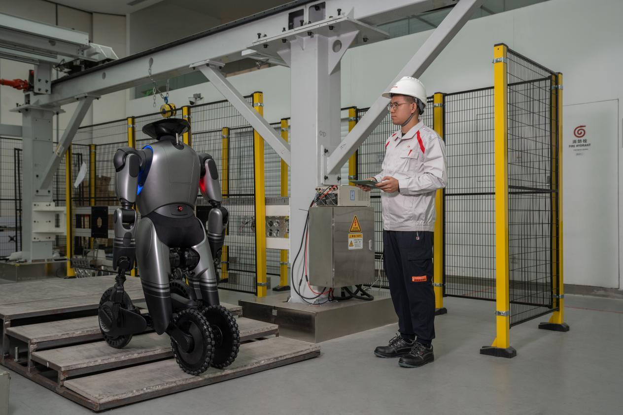 张爱民:我们所有的核心功能部件都是自研的,只有自研才能降低成本并提升整机性能。这个机器人的大脑部分采用远程加自主的控制方式,能够达到15千米每小时(的速度),并且能够持续运行。它在运动模式下非常节能,只有两个电机驱动,其他电器可以锁死,我们追求的是场景中的实用性和落地能力。