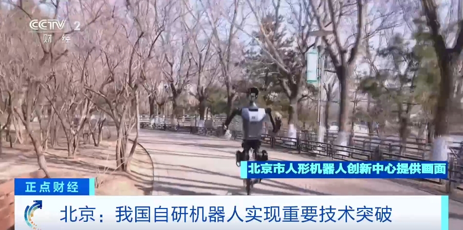 (央视财经《正点财经》)近日,记者从北京市经济和信息化局了解到,北京市人形机器人创新中心自主研发的“天工”人形机器人在基于视觉的“感知行走”、复杂地形高速奔跑、跨越大高差台阶等多项关键功能上实现重要突破。