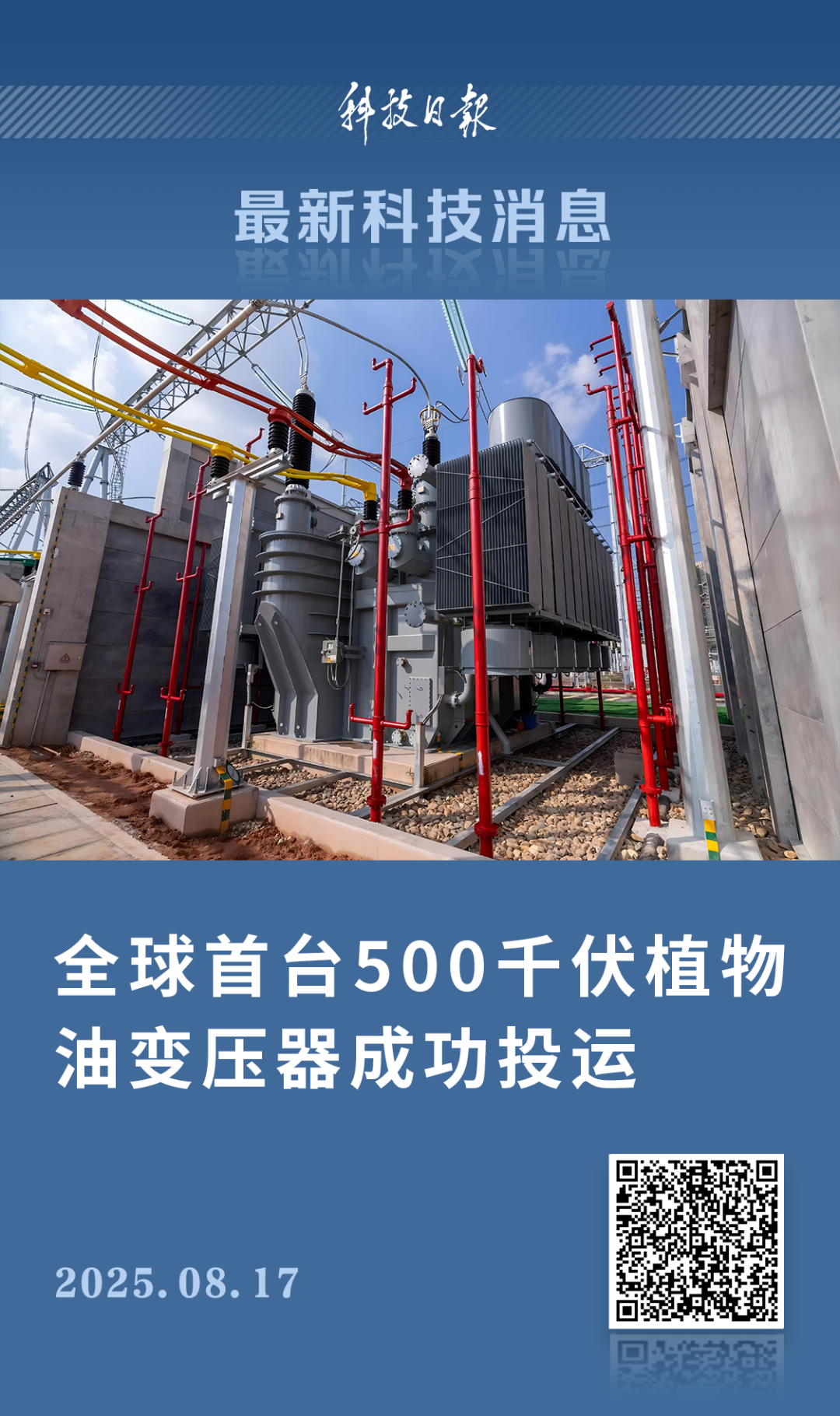 8月15日,由南方电网广东广州供电局牵头研制的全球首台500千伏植物油变压器,在广州500千伏增城变电站成功投运。作为目前全球运行电压等级最高的植物油变压器,其诞生填补了500千伏天然酯绝缘油变压器实用化领域的国际空白。
