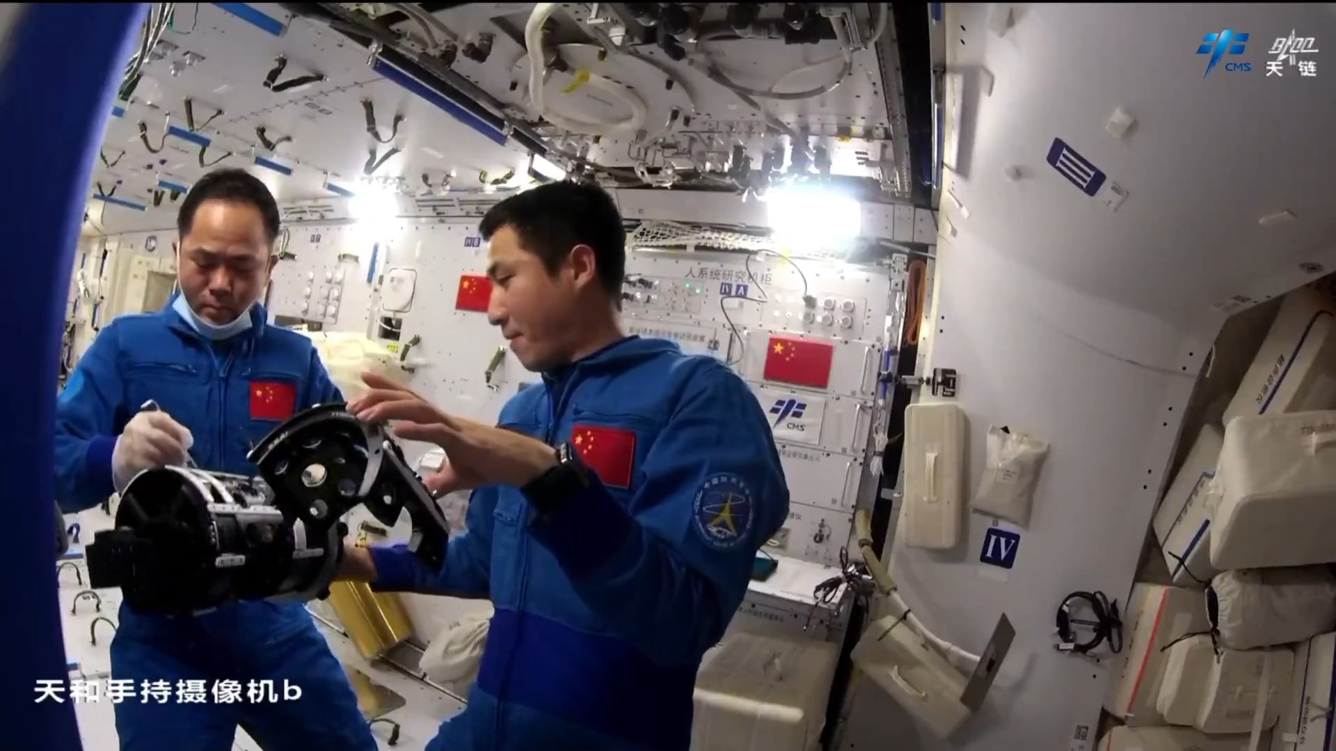 在微重力物理科学领域,乘组按计划完成了两相系统实验柜高速图像存储器更换、实验模块拆装等工作。