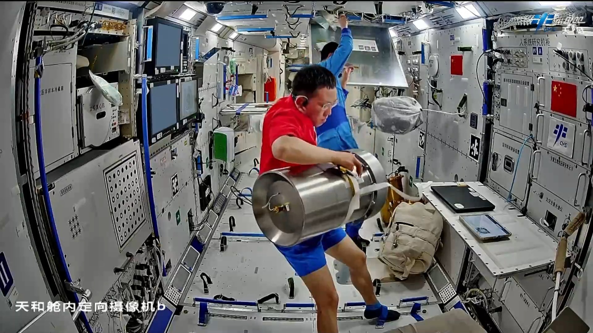 在站务管理方面,乘组开展了物资整理、舱内环境清洁等工作,持续守护太空家园的干净整洁。