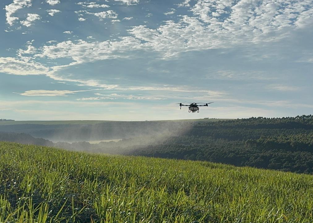 2025年3月25日,在南非夸祖鲁-纳塔尔省的方廷希尔庄园,中国农用无人机为甘蔗林喷洒杀菌剂。新华社记者白舸摄